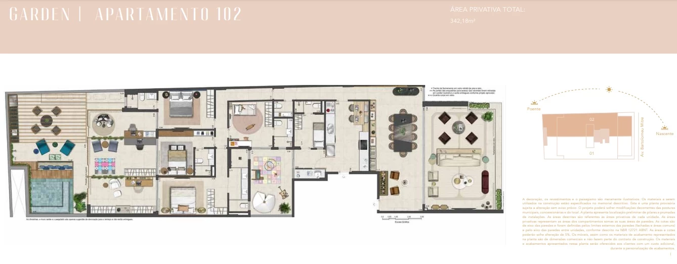 Gardens de 4 suítes, com dependência 339m² até 342m².