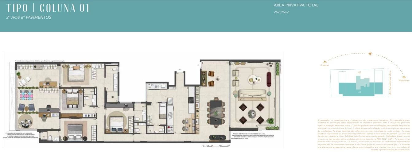 Apartamentos com 4 suítes, com 267m².