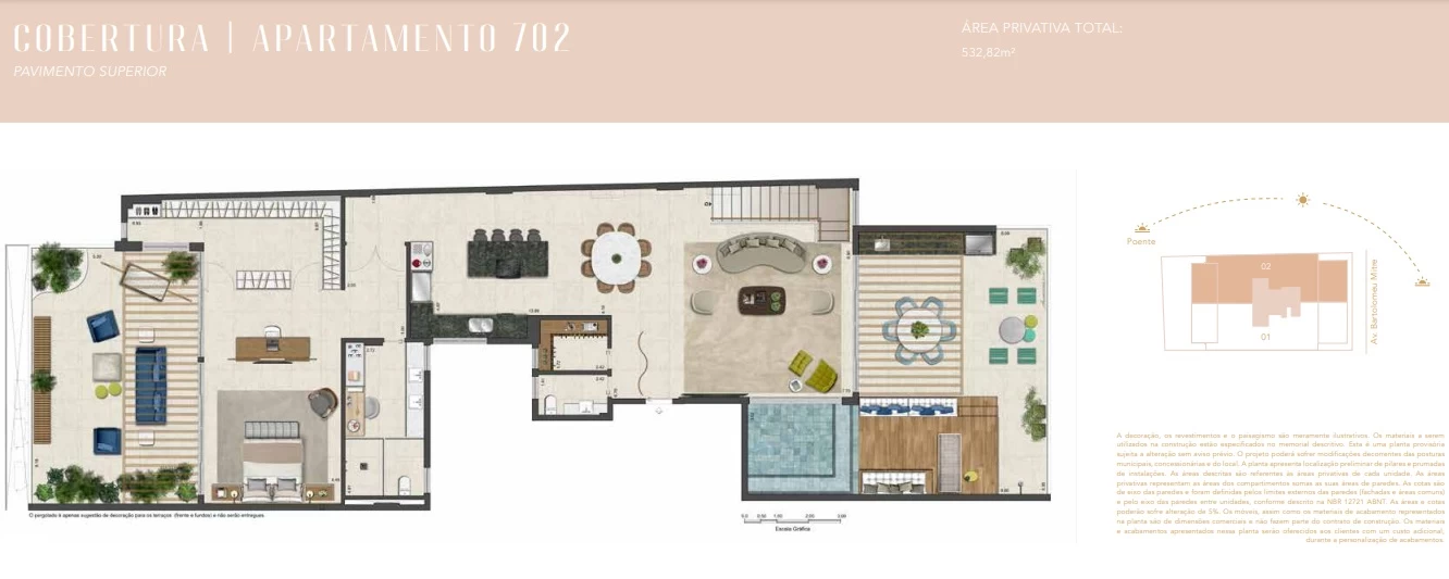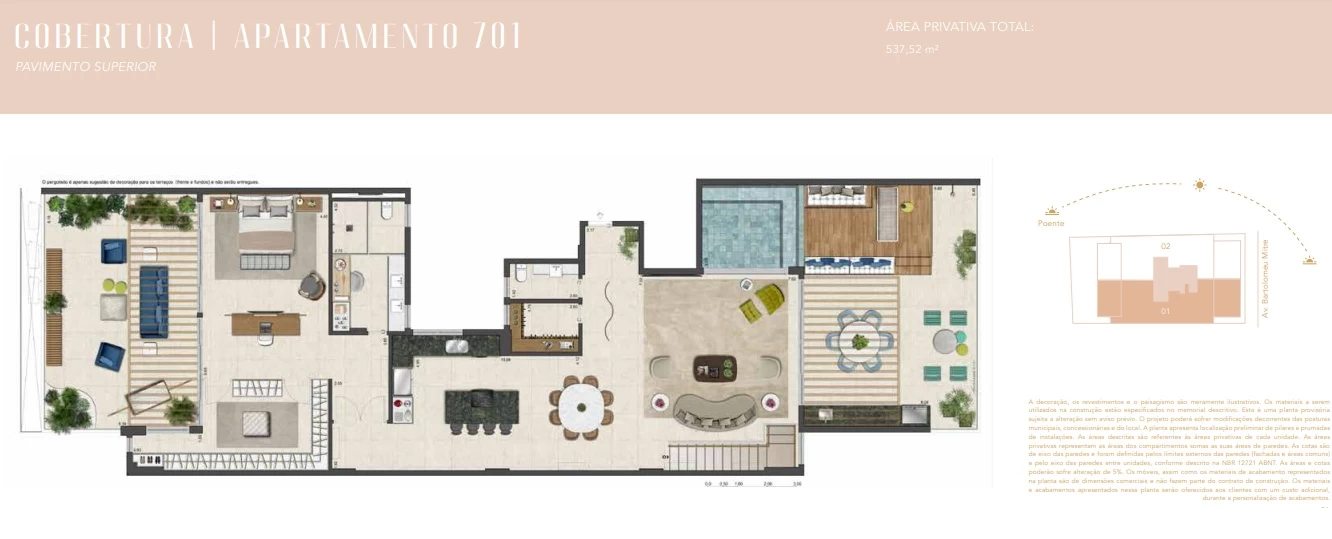 Coberturas duplex com 5 suítes com 532m² até 537m².
